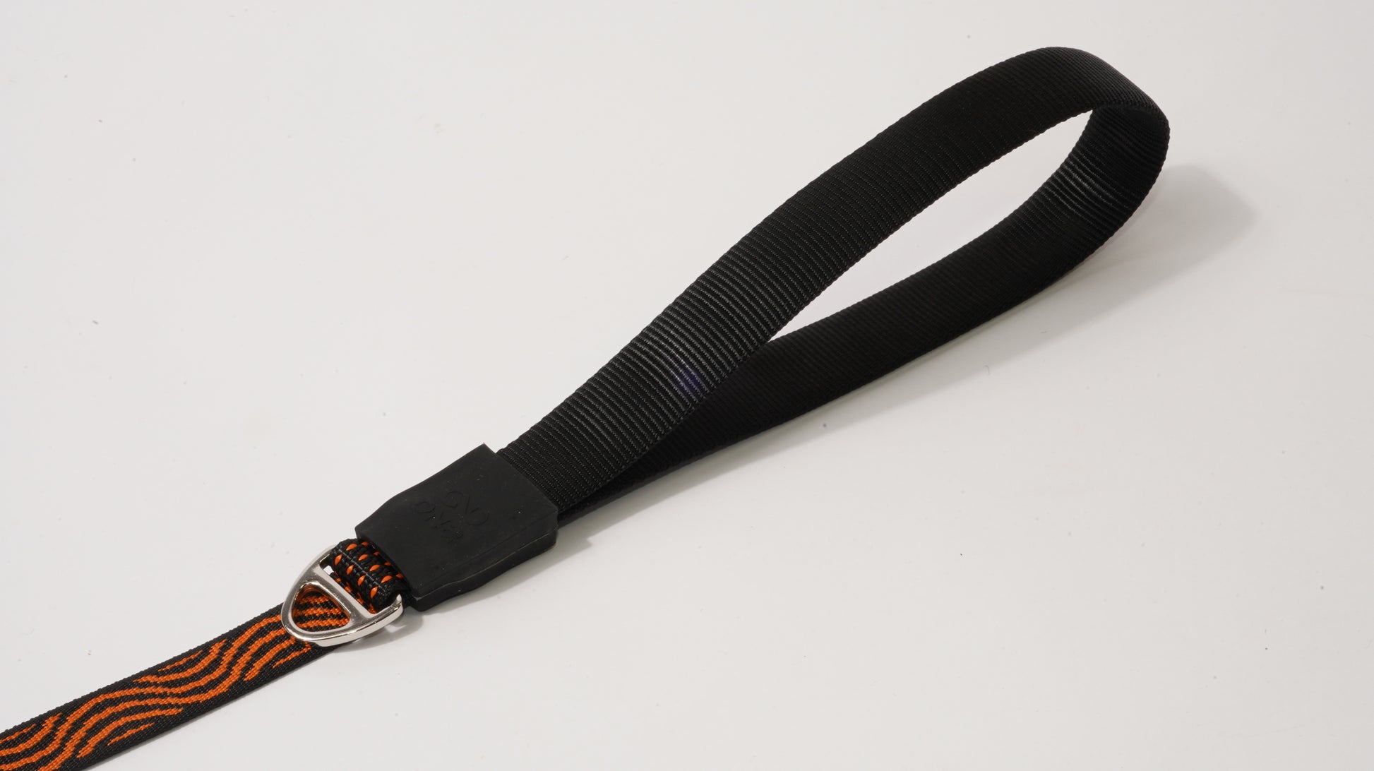 The Explorer Lead features a cushioned handle for comfortable lead-holding, and a D-ring near this handle for attaching on-the-fly poop bags.