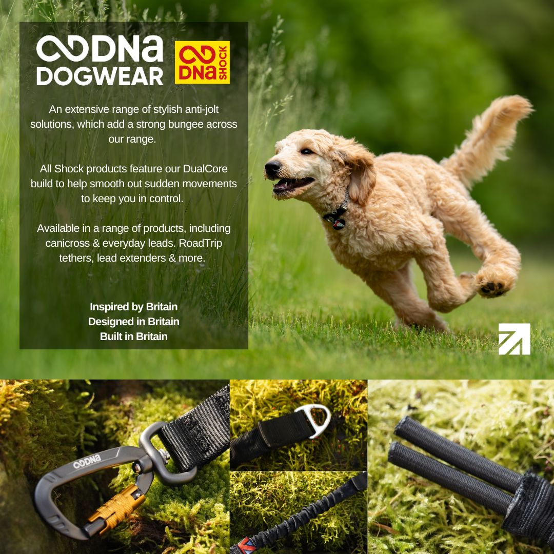 Featuring DNA's Dual-Core shock cord, this line is complete with a tough snap-lock carabiner, for a strong, secure connection between you and your dog.