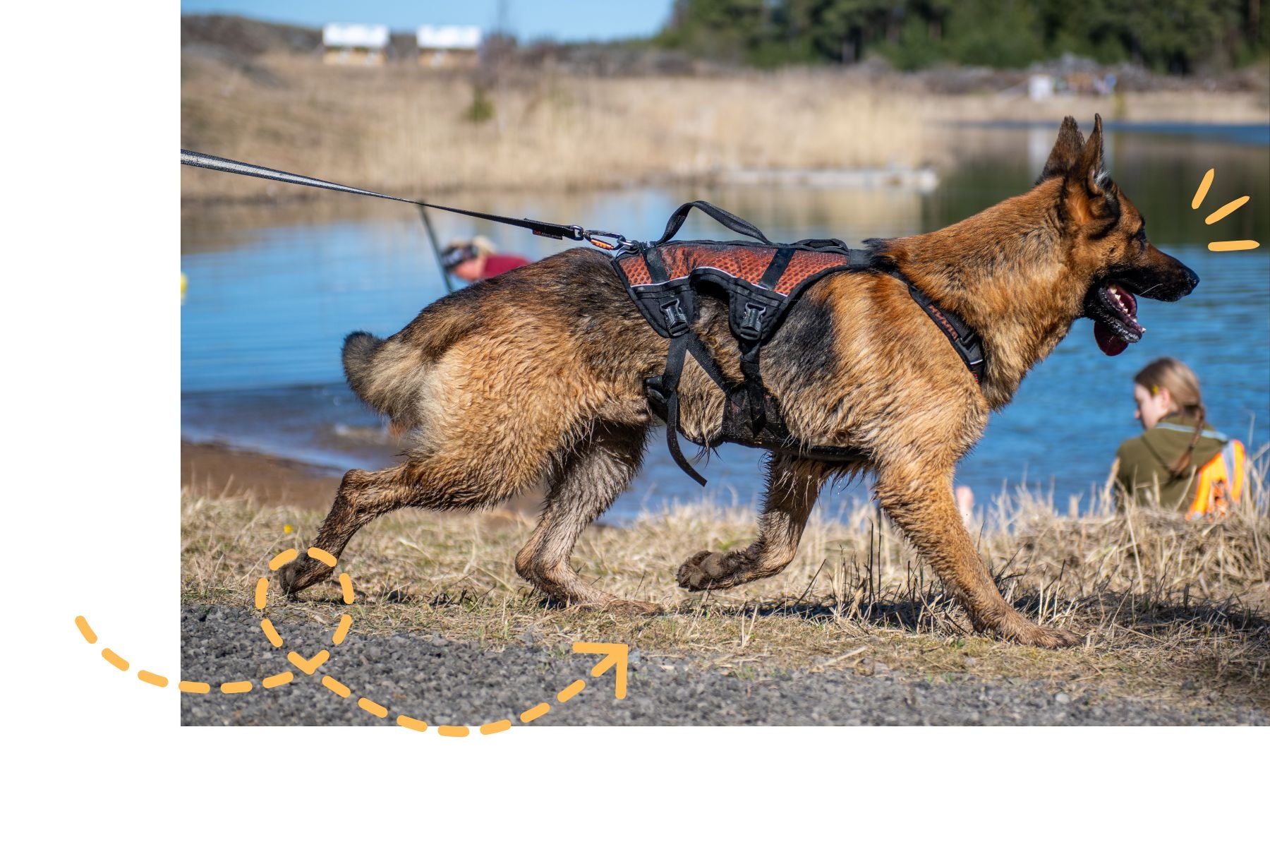 This all-in-one harness is highly adjustable and versatile, equipped with functional features such as a handle. With the goal of developing the most versatile multi-use dog harness on the market, Non-stop dogwear used their experience from dog powered sports to make a harness that also aids with pulling. The support strap at the base of the harness distributes the pressure evenly at top and bottom for optimized power transfer when pulling. This makes the Rock harness long suitable for activities like canicross, bikejoring and skijoring for dogs that are pulling moderately. The Rock harness long is also a great choice for obstacle races and trekking, as it is equipped with a solid handle. When assisting your dog, their weight is distributed evenly over the entire belly panel.