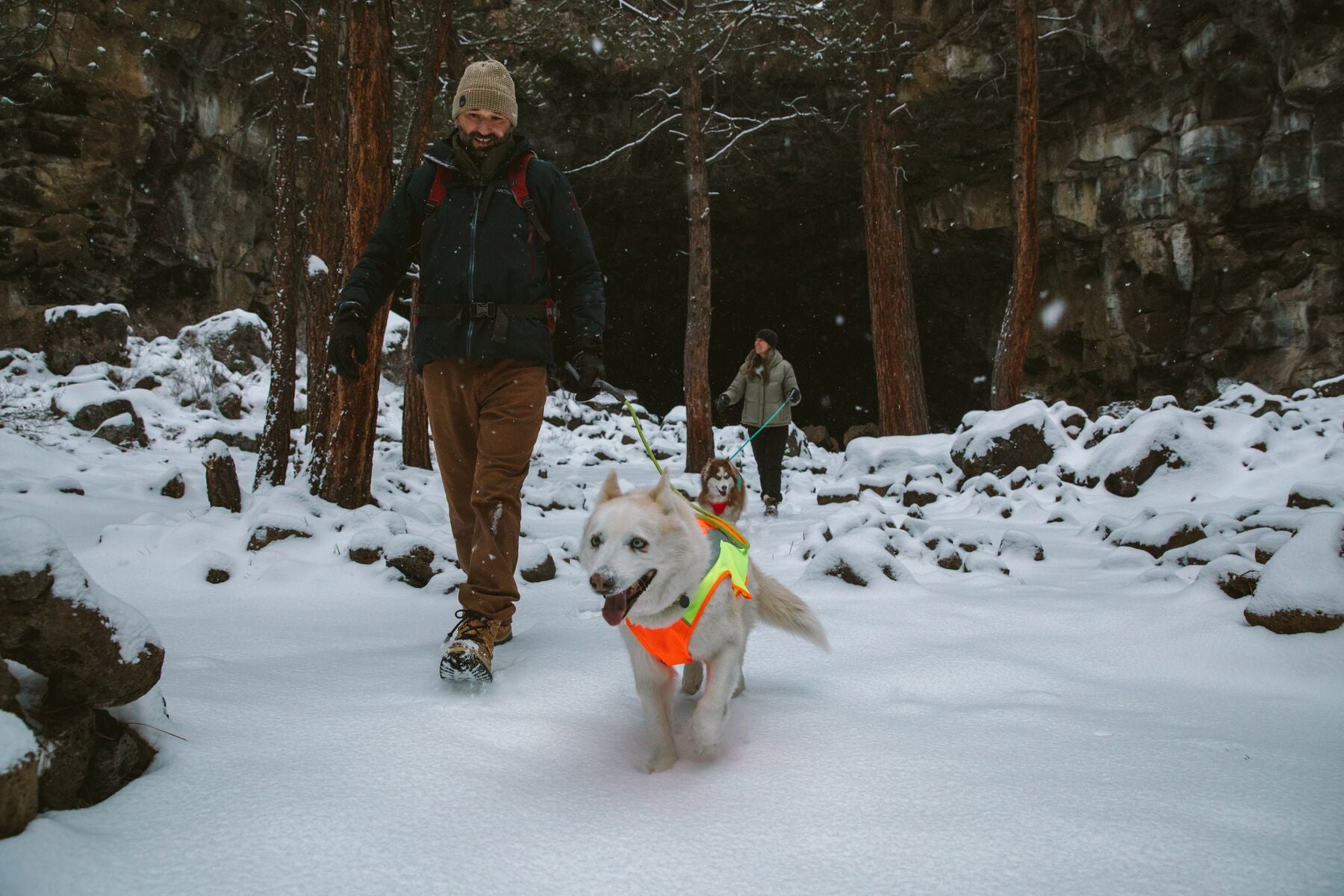 The durable shell offers light weather protection and sheds light moisture. Includes a leash portal for wearing over a harness. Side-release buckles make it an easy on/off piece of gear that'll have you confidently extending your adventures into dawn and dusk.