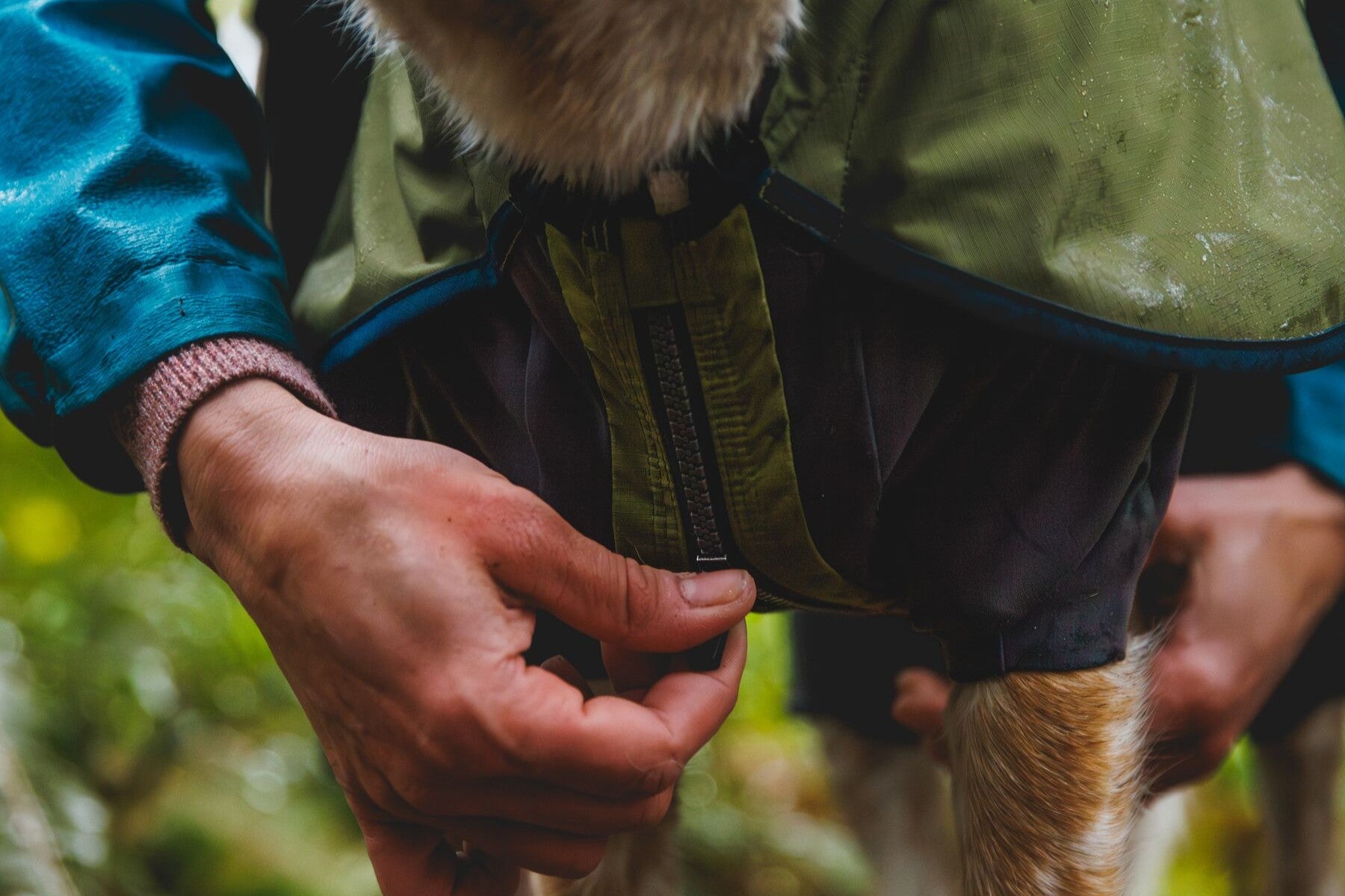 Your dog is weather ready come rain or shine with the Ruffwear Sun Shower™ Coverall. The uninsulated shell is waterproof and windproof to shield against the elements, making it a go-to layer to have on hand year round. Built for comfort and versatility, this coverall features a regular fit with full-body coverage and a convenient chest zipper for easy on and off. The oversized storm collar provides extra protection from harsh weather. Designed for optimal mobility, this coverall for dogs features articulated stretch StormSleeves™ that allow for unrestricted movement without sacrificing coverage. The microadjustable fit with an integrated hem cinch ensures a perfect fit in any condition. A leash portal on the back allows for easy wear over most harnesses, and reflective accents enhance visibility in low-light conditions. Attach The Beacon™ to the light loop for extra visibility. This full coverage dog jacket is a must-have for messy outings. It provides protection from dirt and water, saving you time and effort during post-outing cleanup.