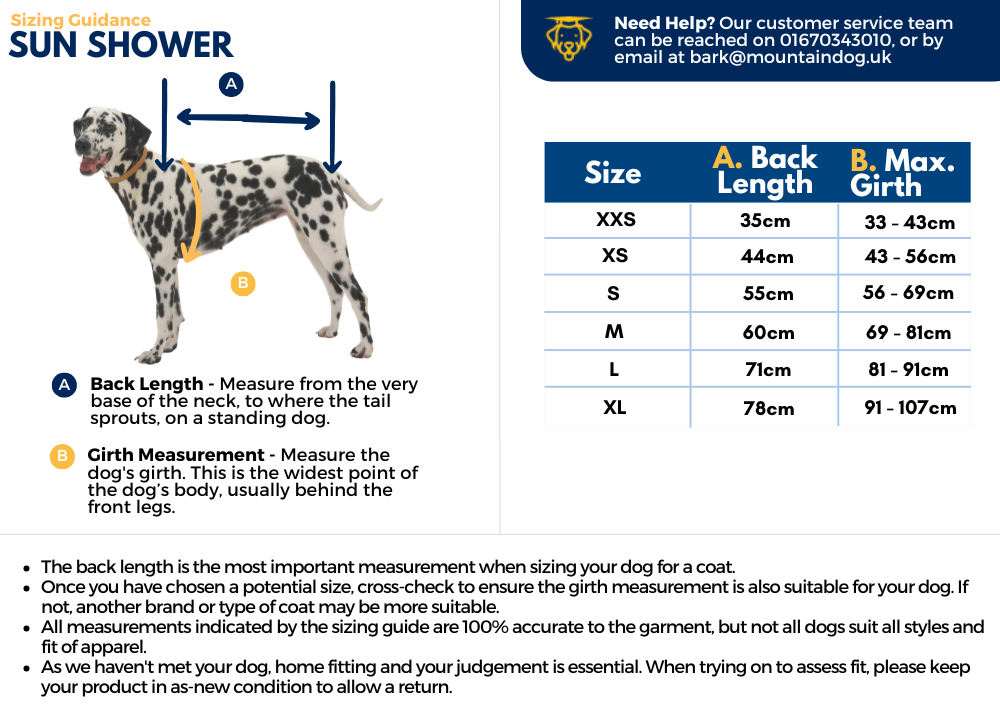 The Sun Shower is a water-resistant shell, with a rating of 2,000mm, is just the jacket for exploring during light showers. The fold-up storm collar and TailGate™ patterning offer extended coverage over the neck, rump and thighs to keep dogs dry in wet conditions. Lightweight and non-insulated, the Sun Shower both excels as a standalone shell and layers well over an insulating mid-layer for rain management in colder temps.